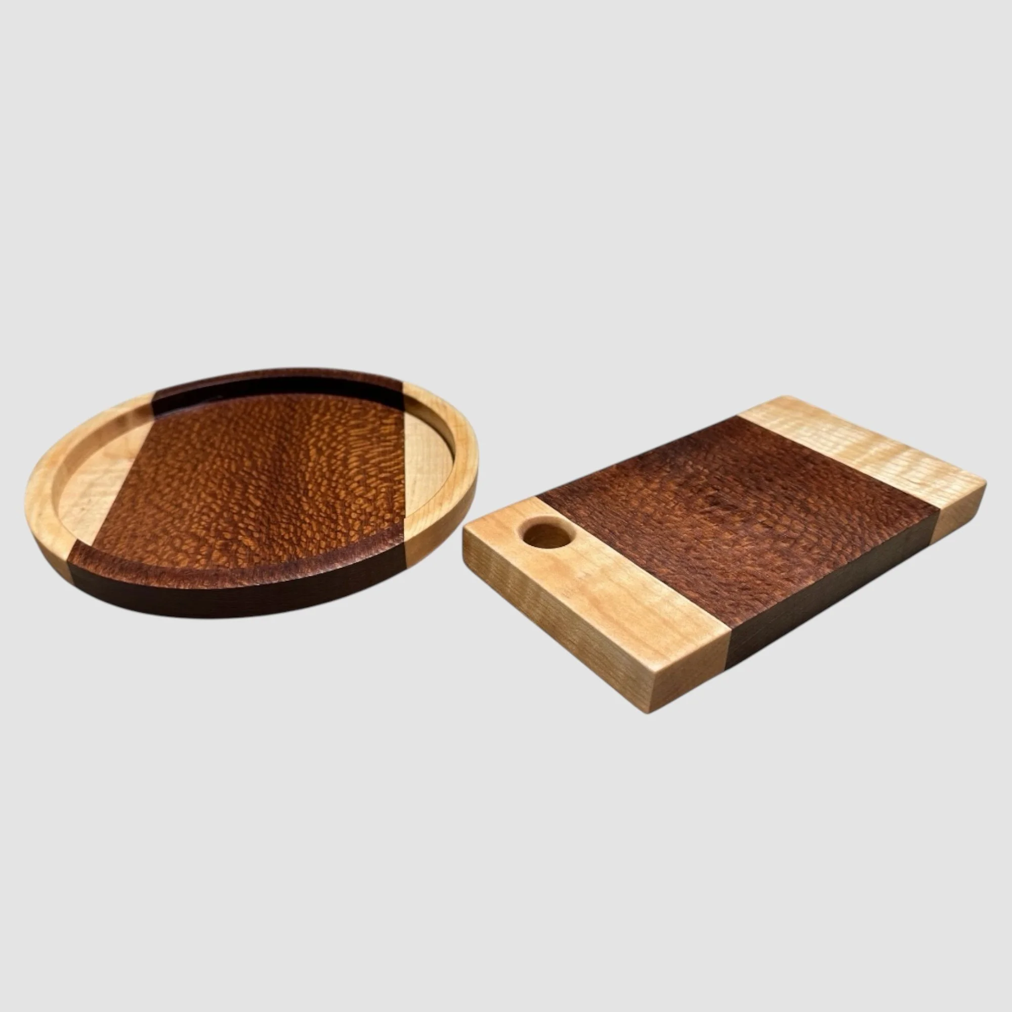 Luxury Home Décor All Walnut, Purple Heart & Padauk Cutting Board $100.00 Curly Maple & Leopard Wood Round Tray + Matching Cheese Board $125.00 Italian Olive Wood Mini Live Edge Charcuterie Board $90.00 Figured Walnut & Cocobolo Round Tray + Incense Holder Kit $150.00 Sold out Purple Heart Cheese Board $40.00 Sold out Leopard Wood and Maple Wood Round Tray $85.00 Sold out Maple Wood and Padauk Wood Round Tray $85.00 Sold out Maple, Padauk & Walnut Cutting Board $100.00 Sold out Exotic Wood Cutting Board with Bocote, Padauk, Purple Heart, and Maple $100.00 Sold out Cherry Wood Round Serving Board with Handle $75.00 Sold out Padauk, Purple Heart, Walnut Cutting Board + Cheese Board Kit $100.00 Sold out Walnut, Padauk & Maple Cutting Board $100.00 Sold out Purple Heart, Maple & Walnut Cutting Board $100.00 Sold out Coasters of Various Hardwoods (4 pack) $25.00 Sold out